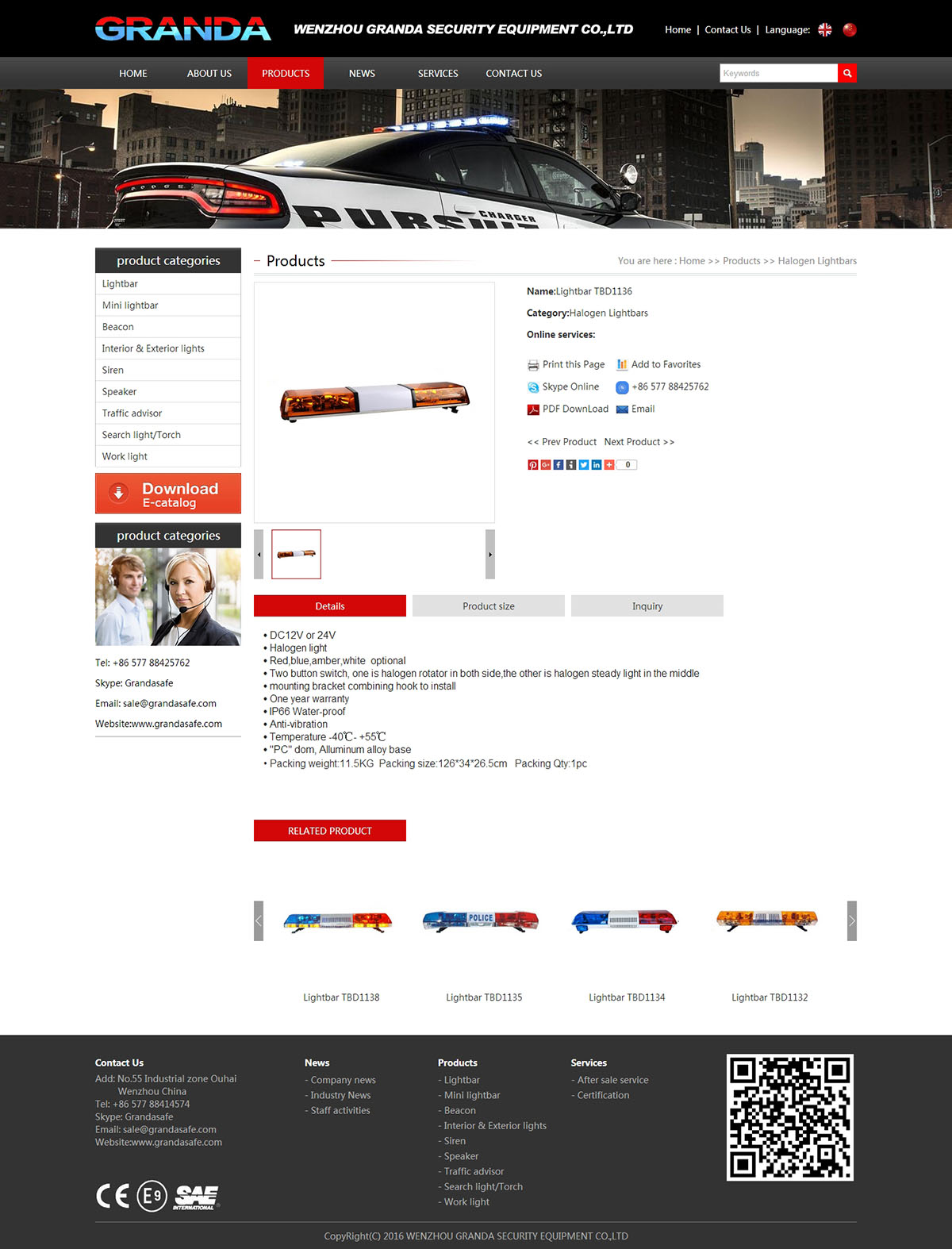 溫州光達安全設(shè)備有限公司成立于2001年,經(jīng)歷十余年的發(fā)展,已成為中國較大規(guī)模的警用設(shè)備生產(chǎn)企業(yè),主要生產(chǎn)警示燈、警報器、揚聲器、交通器材、工作燈、及相關(guān)產(chǎn)品