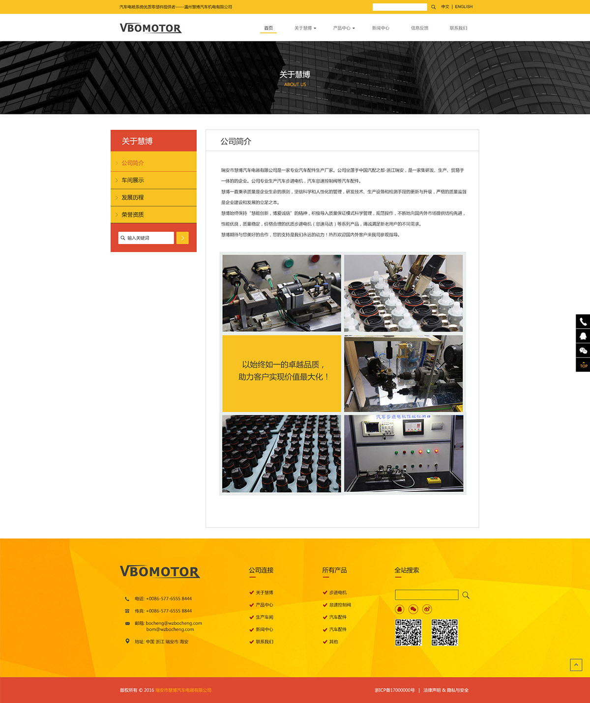 瑞安市慧博汽車電器有限公司是一家專業(yè)生產(chǎn)步進(jìn)電機(jī),怠速控制閥及開(kāi)發(fā)制造其他汽車配件的廠家。公司坐落于中國(guó)汽配之都-浙江瑞安,是一家集研發(fā)、生產(chǎn)、貿(mào)易于一體的的企業(yè)。