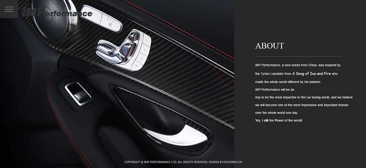 iMP Performance, a new brand from China, was inspired by the Tyrion Lannister from A Song of Ice and Fire who made the whole world different by his wisdom.