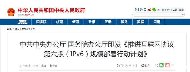 國(guó)家說(shuō)了,2018年底一部分地區(qū)已經(jīng)可以用上IPv6了,到2020年,基本普及IPv6,到2025年,全面支持IPv6。